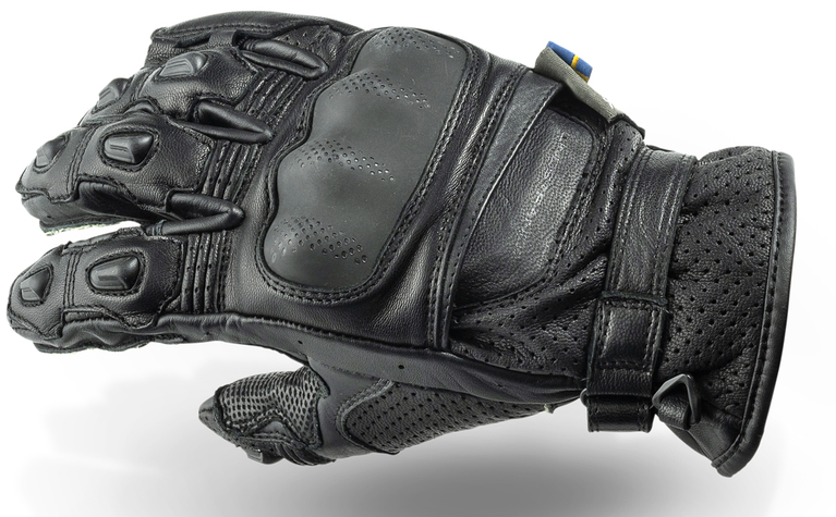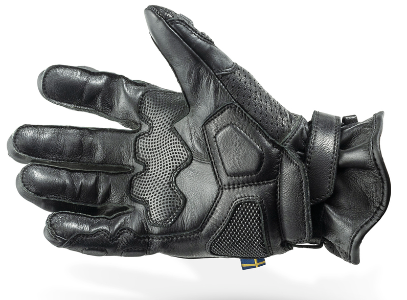 Кожени ръкавици Lindstrands Holen Black Къси издръжливи ръкавици от козя кожа с кангару кожа в дланта Твърда защита на кокалчетата SuperFabric части в дланта HI-ART подсилена зона на дланта CE сертифицирани ниво 1